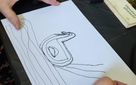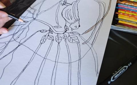 V tvorivej časti kreslili technikou neurokresby, kde obtiahnutím už existujúcich línií hľadali nové prepojenia a vzájomné prieniky. Táto technika podporuje vnímanie súvislostí, uvoľnenie mysle a rozvoj kreativity.