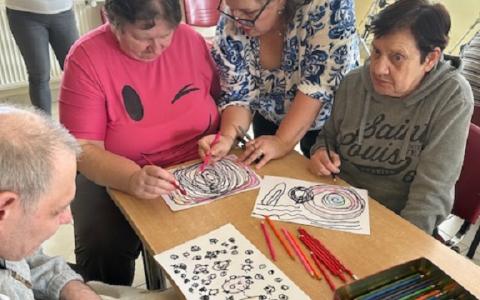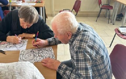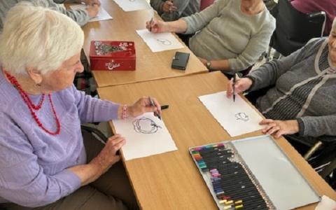 V tomto roku sme na našom pracovisku nadviazali spoluprácu s pani Mgr. Andreou Vyoralovou, certifikovanou arteterapeutkou. Úvodné stretnutie sa uskutočnilo vo štvrtok 12.3.2026. Pani Vyoralová sa prijímateľom predstavila a priblížila im podstatu arteterapie. Stretnutie sa nieslo v znamení jednoduchosti, radosti a spomienok. Témou tvorby bolo jablko – symbol života, zdravia, hojnosti a návratu k jednoduchým radostiam. Najskôr si prijímatelia v mysli predstavili jeho tvar, farbu, vôňu aj chuť. Potom ho začali zhmotňovať kresbou. Pomocou prvkov fraktálnej kresby jablko kreslili do mriežky „po slepiačky“, bez presného plánovania, s dôverou v pohyb ruky a vlastný vnútorný rytmus. Atmosféra bola uvoľnená a radostná. Stretnutie účastníci spontánne zakončili spoločným spevom, ktorý prirodzene prepojil tvorbu, spomienky aj vzájomnú blízkosť.  Arteterapia bude prebiehať raz do týždňa skupinovou formou.