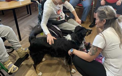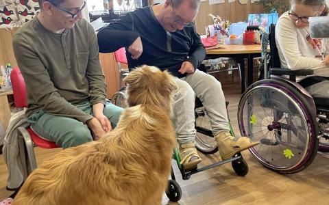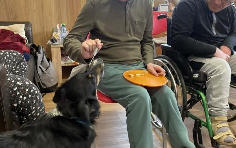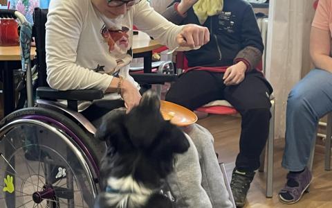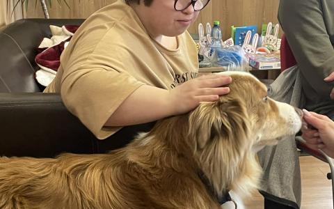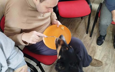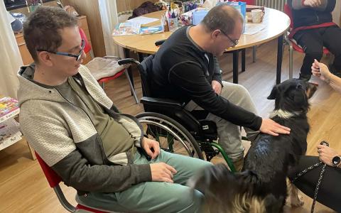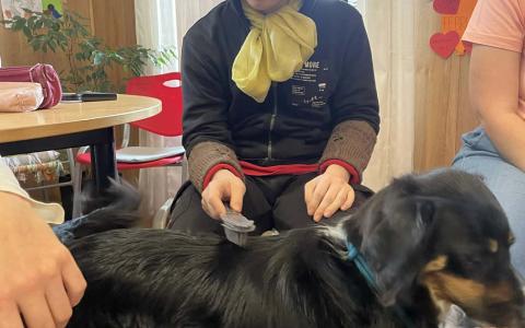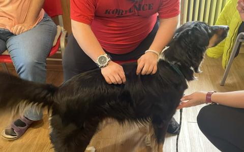 Dňa 2.4.2026 sme mali canisterapiu. Naši prijímatelia sa už nevedeli dočkať kedy prídu ich psí kamaráti Monti a Akim. Atmosféra bola výborná. Na začiatok si naši prijímatelia psíkov vyhladkali, potom s nimi cvičili rôzne aktivitky. No najlepšie sa im páčilo keď mohli psíkov učesať od hlavy až po chvost. Ďakujeme za poobednú aktivitu a tešíme sa na ďalšie stretnutie.