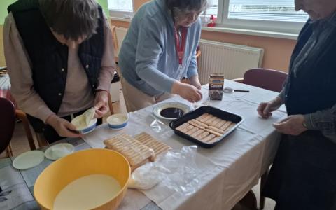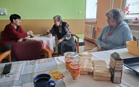 Utorok 24.2.2026 si prijímatelia pod vedením inštruktorky sociálnej rehabilitácie, pani Urbanovej, spríjemnili prípravou koláča. Pri práci bola dobrá nálada, pripravovali ho s láskou. A s ešte väčšou ho prijímatelia zjedli. Chutil, bol výborný.