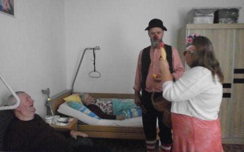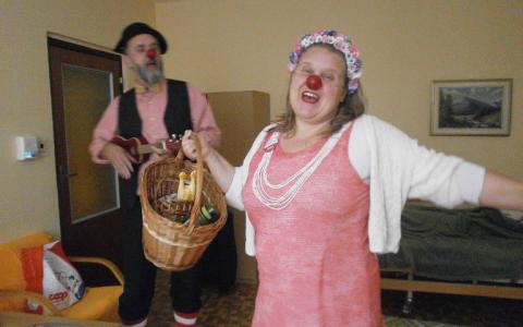 V piatok 17.10.2025 nás prišli potešiť dvaja zdravotní klauni z OZ Červený nos Clowndoctors, Želka a Gusto. Ich návšteva, spojená s témou hubárčenia a ako vystrašiť medveďa veselými pesničkami, priniesla našim klientom úsmev a dobrú náladu. Tešíme sa na ďalšiu veselú návštevu!