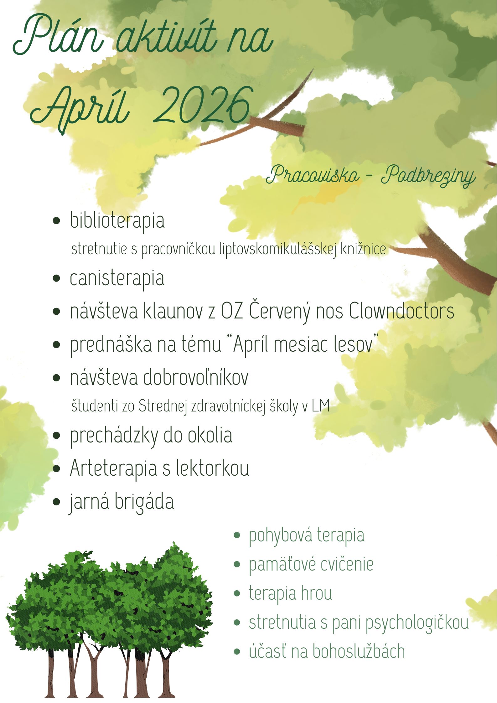 Plán aktivít na rok 2026 a plán aktivít na mesiac Marec 2026 - pracovisko Jefremovská - Podbreziny:
