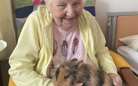 Pani Dáška Niňajová spolu so zajačicou Muckou a psíkmi Akimom a Montym svojou prítomnosťou potešili a pozitívne pôsobili na 30 klientov. Stretnutia prebiehali formou individuálnej terapie na bytoch a skupinovej terapie v spoločenskej miestnosti. Tešíme sa na ďalšiu návštevu.