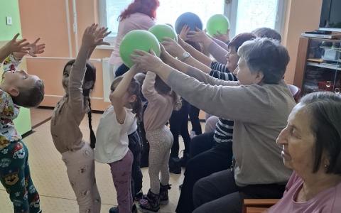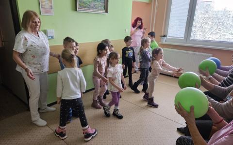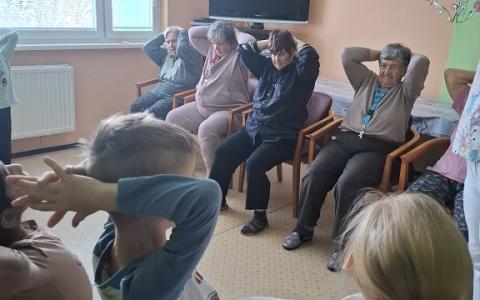 V pondelok 24.11.2025 dopoludnia sa uskutočnila druhá spoločná pohybová terapia, na ktorej sa zúčastnili klienti spolu s detičkami a pani učiteľkami z Materskej školy Agátik na Podbrezinách. Rozcvičku formou hry pre nich opäť pripravili naši fyzioterapeuti a inštruktorky sociálnej rehabilitácie. Nálada pri cvičení bola výborná, všetci sa už teraz tešia na ďalšie stretnutie.