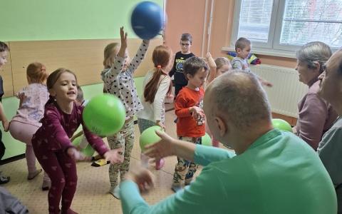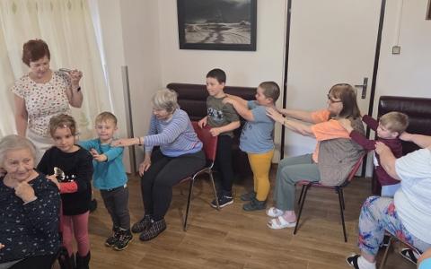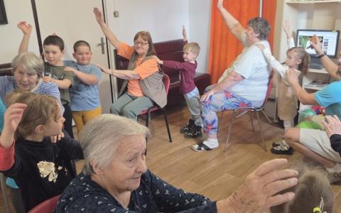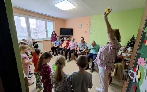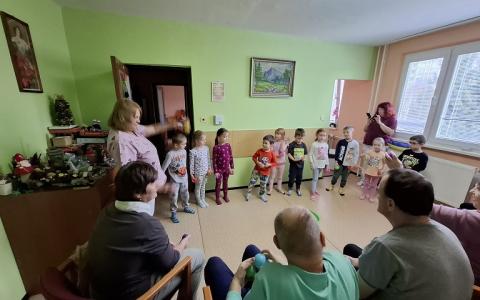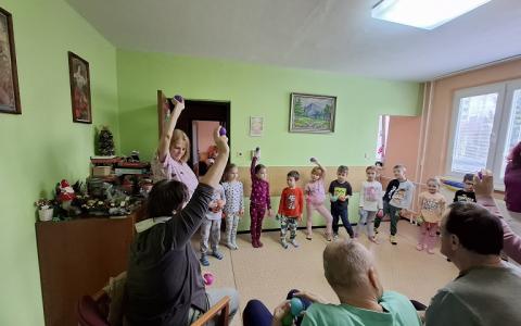 Pondelkové dopoludnie 8.12.2025 našim prijímateľom spríjemnili návštevou detičky a pani učiteľky z Materskej školy Agátik na Podbrezinách. V dvoch skupinách si spoločne zacvičili v rámci pohybovej terapie. Veľkým prekvapením bolo, keď popri cvičení deťúrence zaspievali piesne a zarecitovali básničky o Mikulášovi, ktorý ich navštívil v škôlke. Bolo veselo, plno radosti, smiechu a pohybu.