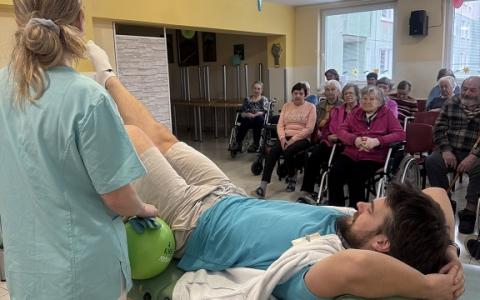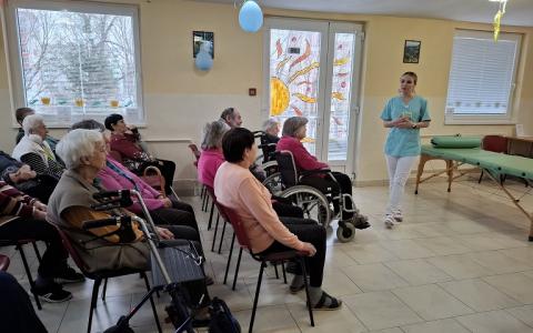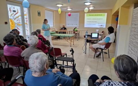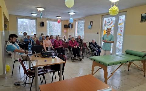 Dňa 18. 2. 2025 sa v našom zariadení uskutočnila odborná prednáška zameraná na dôležitosť rehabilitácie v starobe. Pod vedením našej fyzioterapeutky, pani Mgr. Dohňanskej a asistenta fyzioterapeuta pána Kališa, mali prijímatelia sociálnej služby možnosť získať cenné informácie o procese starnutia a jeho vplyve na pohybový aparát.