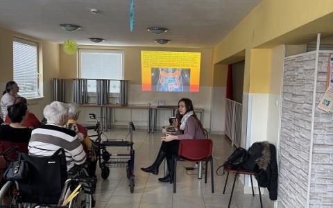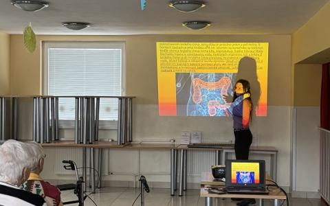 V piatok 16.1.2026 nás navštívila pracovníčka Regionálneho úradu verejného zdravotníctva z Liptovského Mikuláša. Pripravila pre nich tému „Rakovina hrubého čreva“. Naši prijímatelia sociálnych služieb si vypočuli informácie o prevencii, príznakoch, diagnostike a liečbe rakoviny hrubého čreva, ktorá patrí medzi najčastejšie vyskytujúce sa onkologické ochorenia a postihuje zvyčajne starších ľudí. Tiež získali užitočné rady ako sa starať o svoje telo, aby sme predchádzali ochoreniu. Súčasťou prednášky bolo premietanie cez projektor. V závere sa viacerí prijímatelia zapojili do diskusie a získali letáky k danej téme. Na prednáške sa zúčastnilo 21 prijímateľov sociálnych služieb.