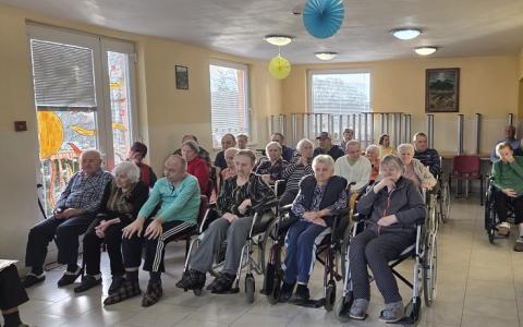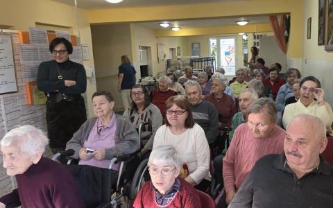 Dňa 16.12.2025 sme pre našich prijímateľov pripravili predvianočné vystúpenie. V úvode programu vystúpili členovia domáceho spevokolu „Lipka“ pod vedením našej pracovníčky, pani Anny Háčikovej. Svojím programom plným pesničiek, básničiek a kolied urobili prijímateľom veľkú radosť detičky z dvoch materských škôl v Okoličnom. Pani učiteľky spolu s deťmi pripravili aj krásne darčeky - krabicu medovníčkov, papierové anjeliky, box plný rôznych prekvapení (vitamíny, čaj, kozmetika, krížovky,...). Deti od nás dostali sladkú odmenu. V závere stretnutia sme prítomným prijímateľom rozdali balíčky z projektu "Koľko lásky sa zmestí do krabice od topánok". S rozdávaním nám pomohli aj pani Jana Ferenčíková, koordinátor projektu za Žilinský kraj, pani profesorka a študenti z Obchodnej akadémie v Liptovskom Mikuláši a žiaci zo Základnej školy v Okoličnom – aj ich školy sa zapojili do tohto projektu. Prijímateľom, ktorí sa podujatia nezúčastnili, sme odovzdali krabičku priamo na byte. Darček všetkých veľmi potešil.