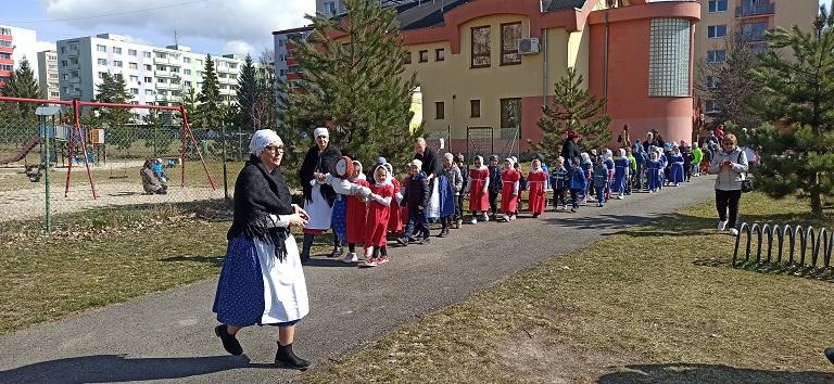 Vynášanie Moreny je dávny zvyk, ktorý má korene v predkresťanskom období, kedy ľudia verili, že prírodu ovládajú nadprirodzené sily. Pripisovali im striedanie ročných období a mysleli si, že ich konanie možno ovplyvniť. Koncom zimy preto túžbu skoncovať s chladným počasím a privolať teplé lúče slnka ľudia vyjadrili spevom a tancom. Deti z Materskej školy Agátik na Podbrezinách sa pod vedením pani učiteliek  so zimou rozlúčili 23.3.2026.  Zo škôlky sa sprievod presunul cez pešiu zónu k blízkemu potoku Smrečianka, kde deti spevom a hrami privítali jar. Na základe pozvania pani riaditeľky materskej školy, pani Štricovej, sa na tomto milom podujatí zúčastnilo 11 našich prijímateľov v sprievode personálu.